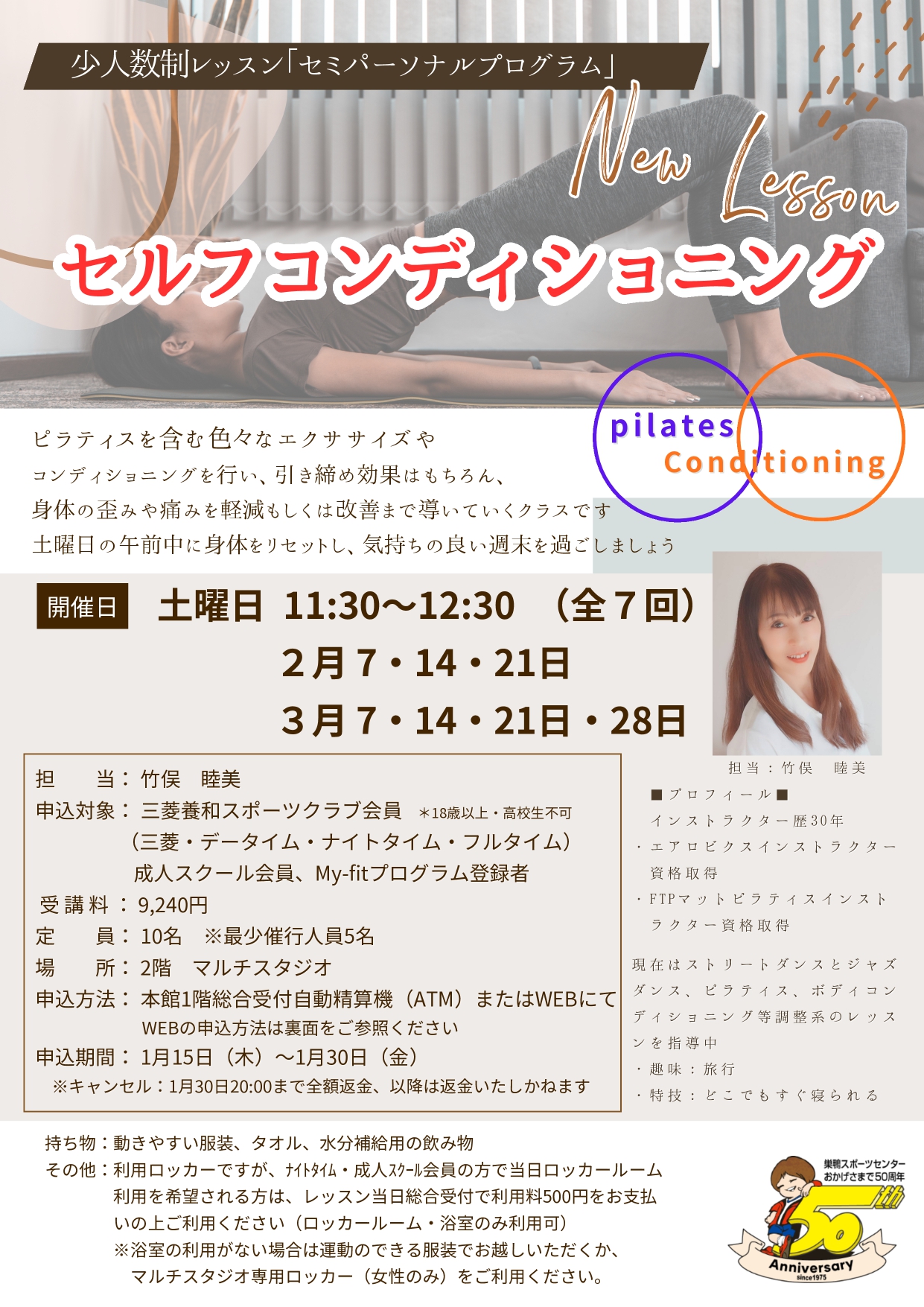2階マルチスタジオで行う少人数制「セミパーソナルプログラム」に新しいプログラムが登場します!