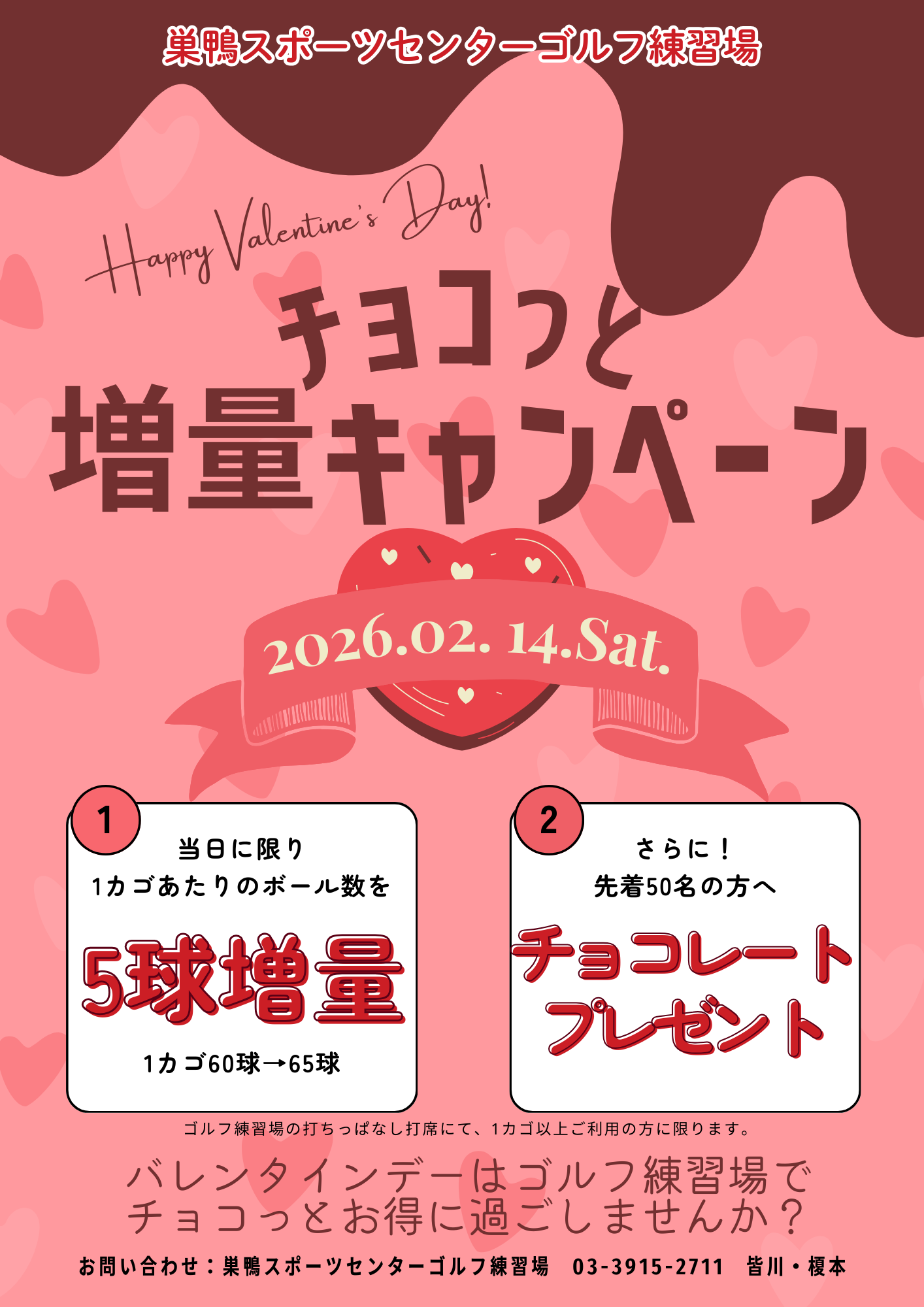 【ゴルフ練習場】チョコっと増量キャンペーン 開催!