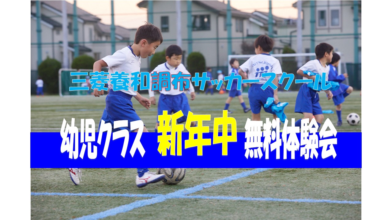 三菱養和調布サッカースクールでは、幼児クラス(新年中)の無料体験会を下記の要領で開催します。入会をご検討中の方は、この機会にぜひサッカースクールの体験会へお越しください。
