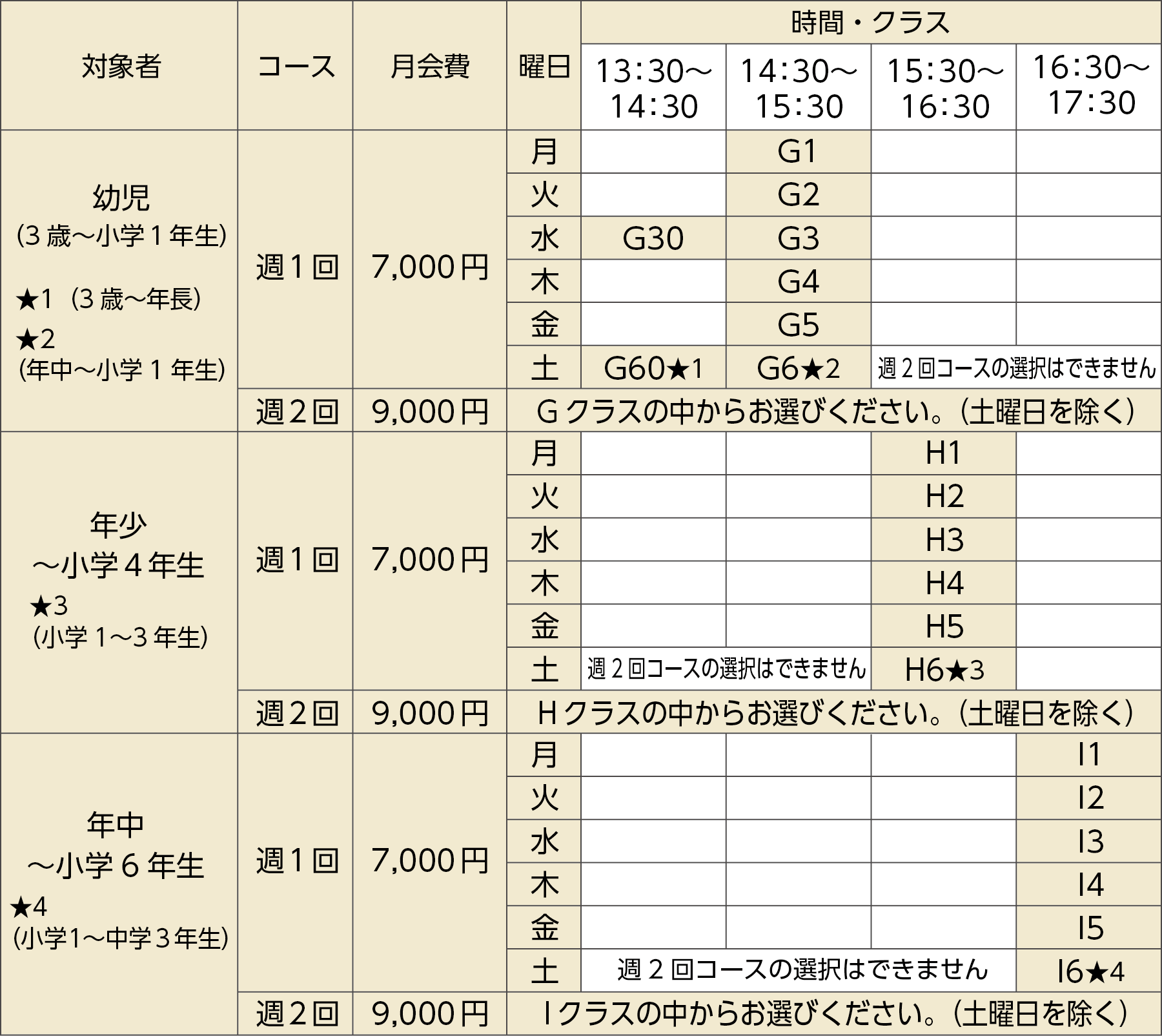 各クラスの対象年齢幅を広げ通いやすくなりました。
