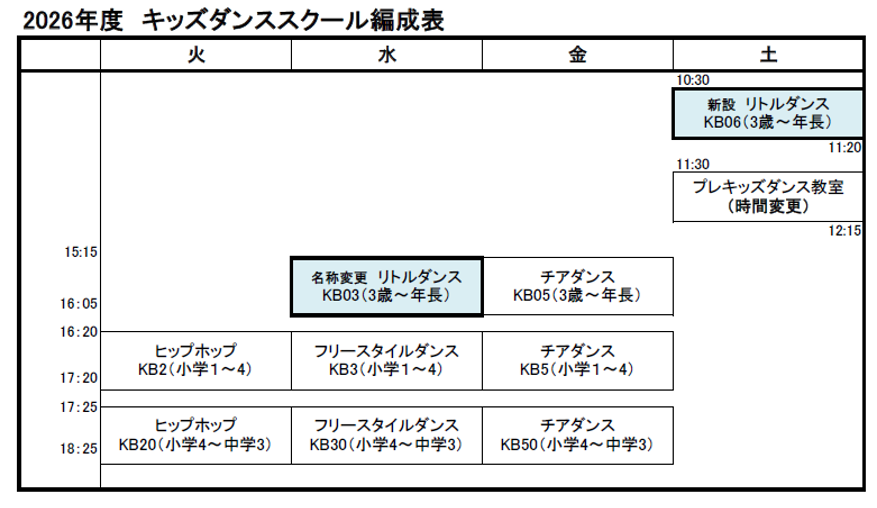 2026年度より、キッズダンススクール幼児クラスを一部変更することとなりましたので、下記のとおりご案内申し上げます。