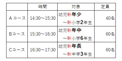 ・Ⅱ期期間、他種目短期教室も開催いたします。日程をよくご確認の上お申し込みください。