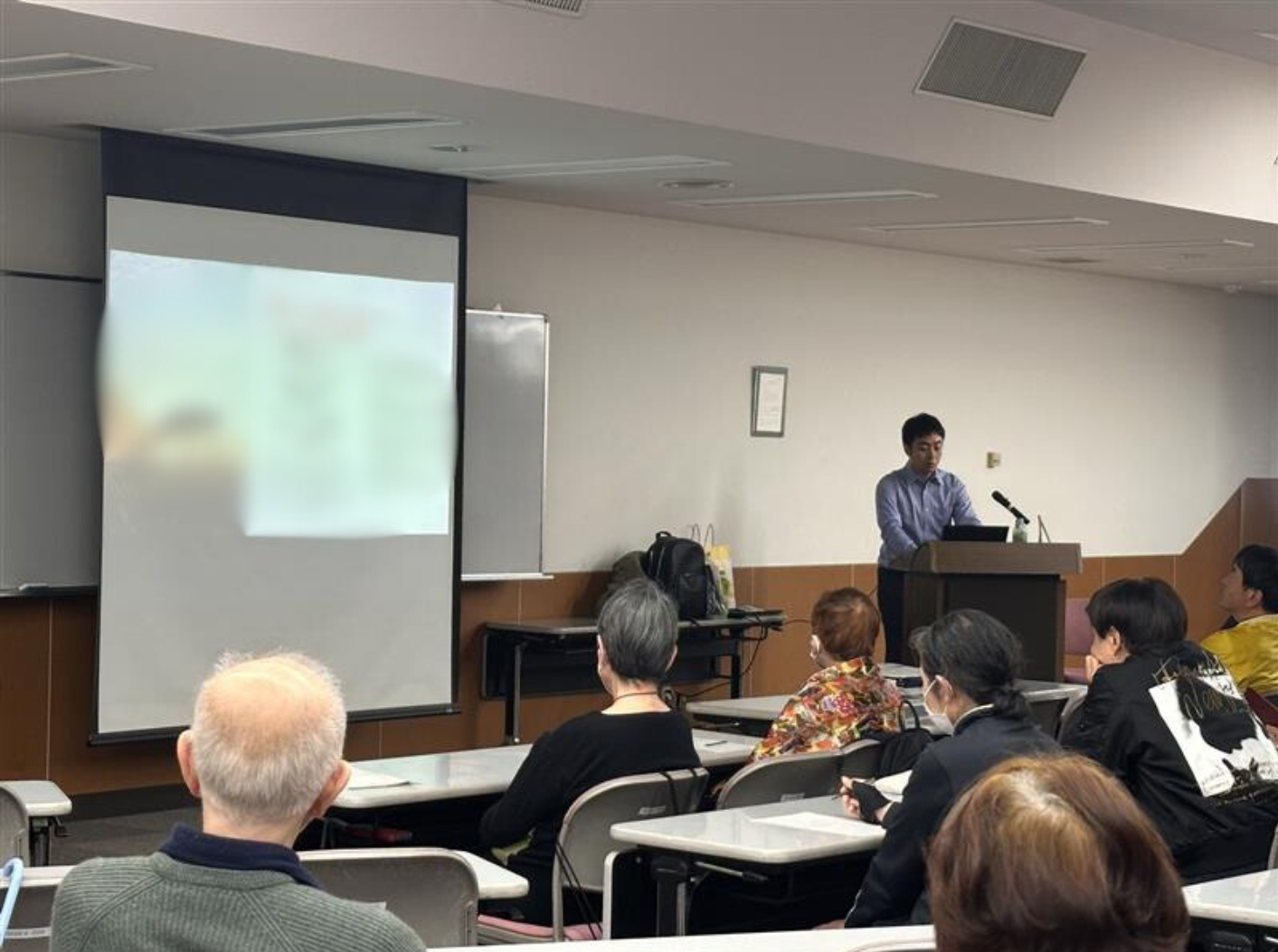 先生からは、腰痛や膝痛のメカニズムについて医学的見地からのご説明があり、日常生活の動作の注意点や、一見関係なさそうに思える股関節や臀部の重要性、さらに痛みの調整には運動が有効であることについてご講演いただきました。